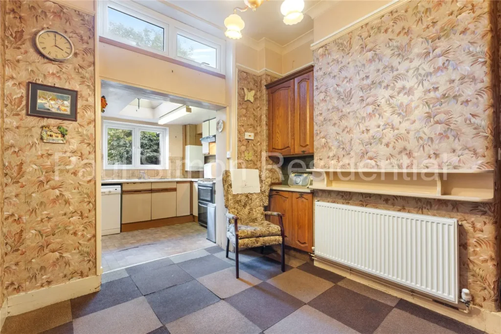 Double-glazed sash bay windows, carpeted flooring and three radiators, one on each side of the bay.Dining Room