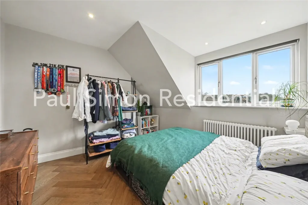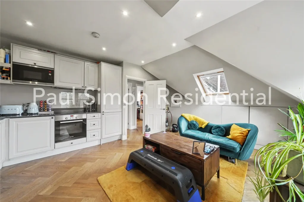 The property features a bright south-facing reception room with attractive leafy views over the park, flowing into a contemporary open-plan kitchen fitted with integrated Bosch appliances. The high-quality finish continues throughout, including a spacious and airy principal bedroom. The second bedroom, positioned to the rear alongside the principal bedroom, benefits from peaceful roof top views. The fully tiled family bathroom is elegantly appointed, offering a walk-in shower, underfloor heating, and excellent natural light. The space has also been recently refreshed, with new skirting boards installed and redecorated within the last six months.