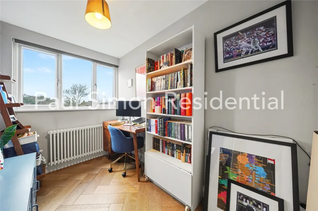 Herringbone parquet flooring, built-in wardrobes, radiator and double-glazed windows to side aspect.