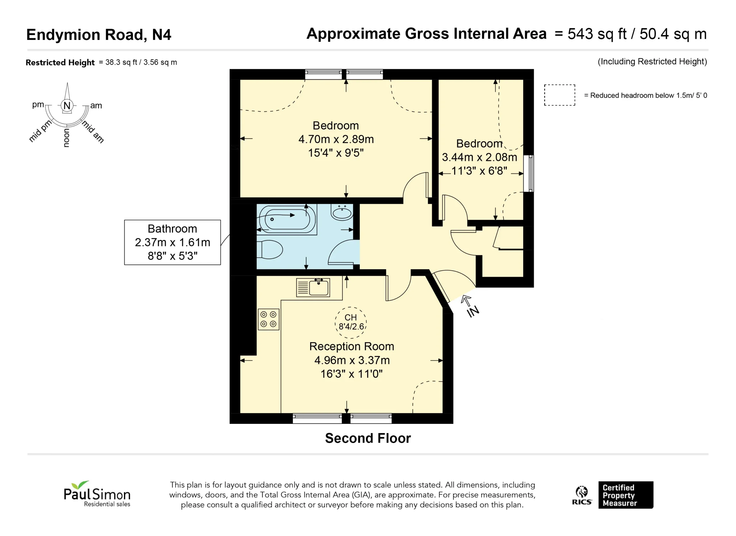 Positioned at the foot of the highly sought-after Harringay Ladder, this well-proportioned two-bedroom Victorian conversion occupies the top floor of an attractive period building and extends to approximately 543 sq ft, offering excellent natural light and open views towards Finsbury Park.