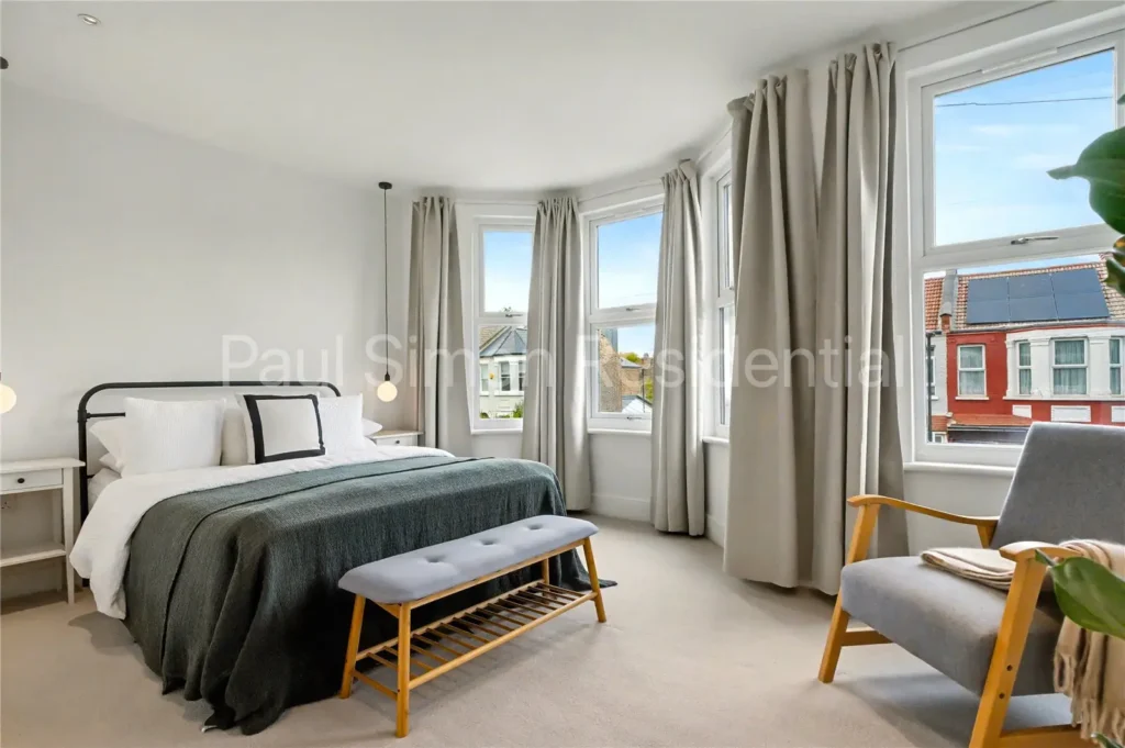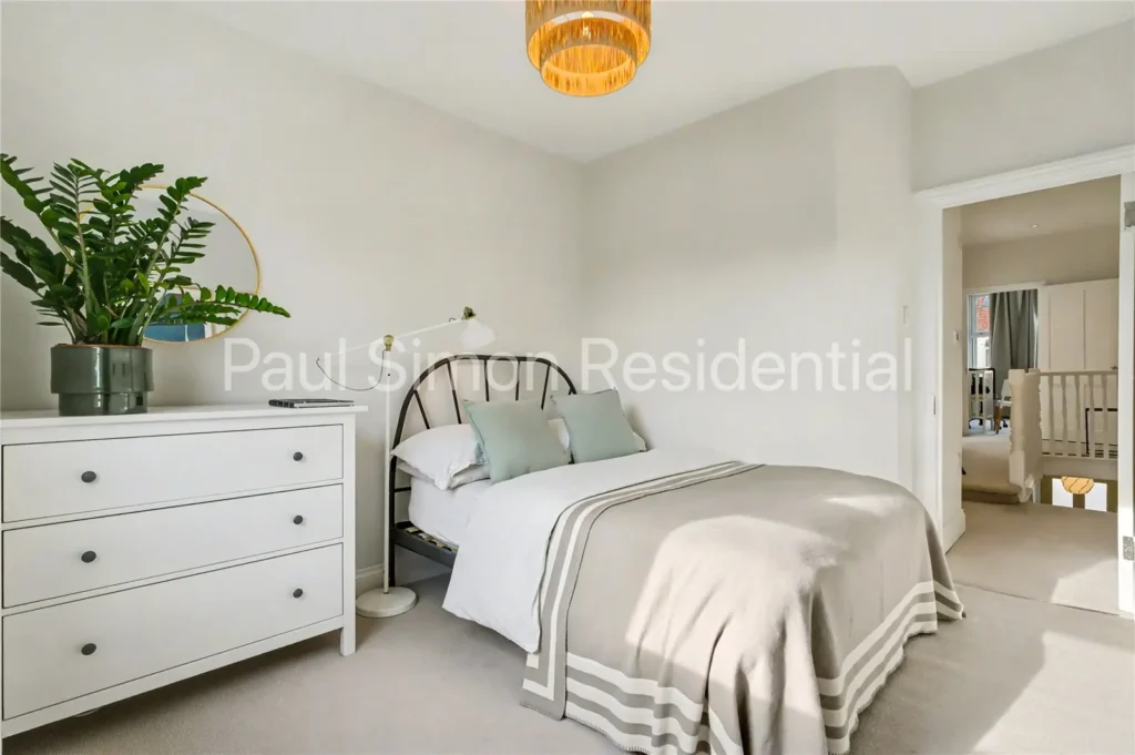 Upstairs are three generously sized bedrooms, ideal for families, guests, or home working. The family bathroom has been reconfigured to an architect’s design, complemented by bespoke architectural lighting throughout.