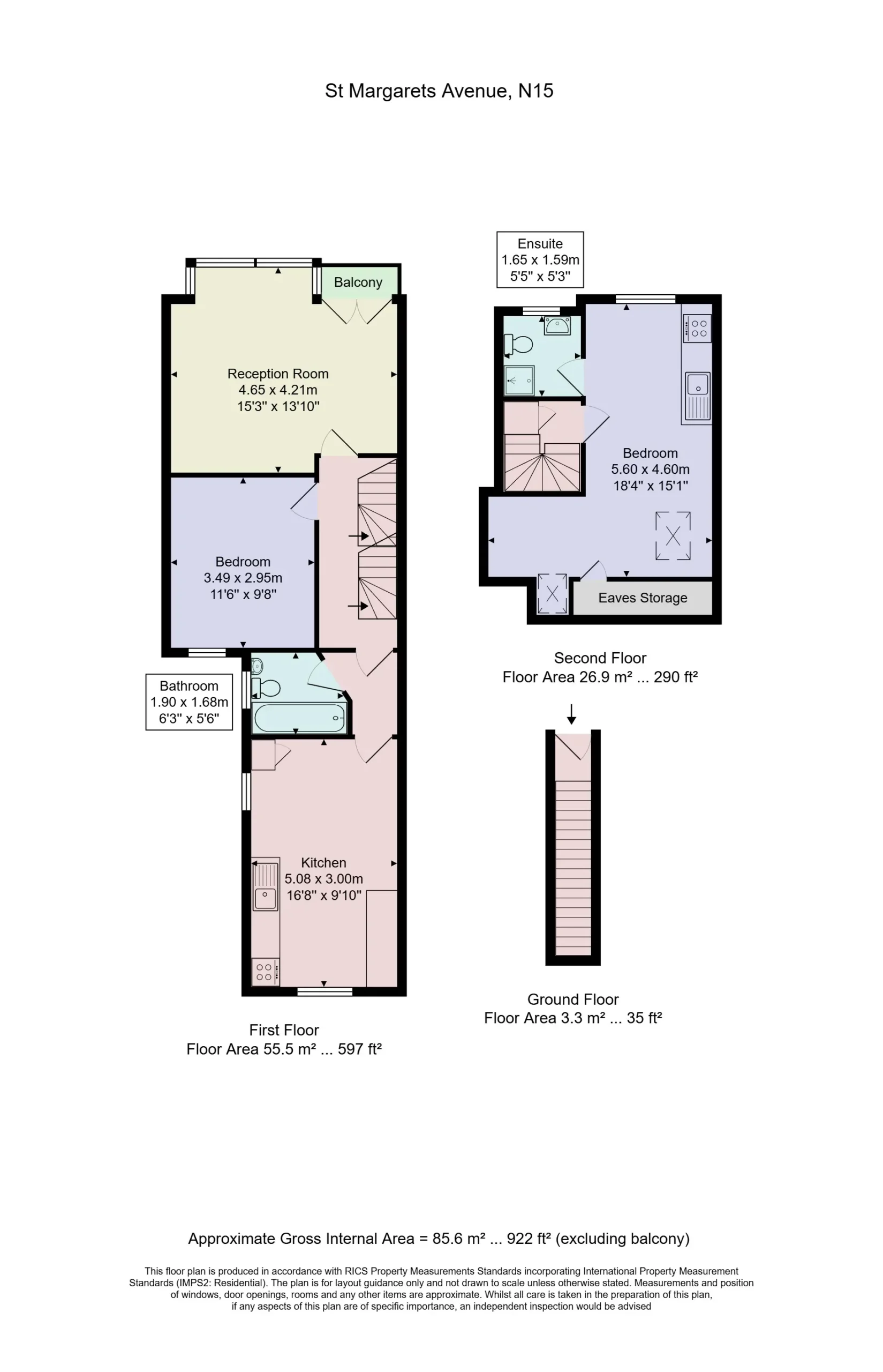 A superb opportunity to acquire this beautifully presented two-bedroom, two-bathroom period conversion, set across the upper floors of an attractive mid-terraced Victorian property in the heart of Haringey, London N15. Spanning approximately 922 sq ft (85.6 sq m) and SHARE OF FREEHOLD, this spacious and light-filled home and a generously proportioned kitchen-diner, perfect for modern living.