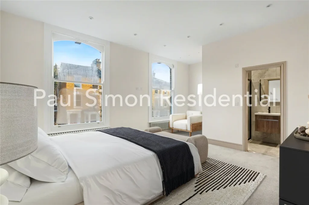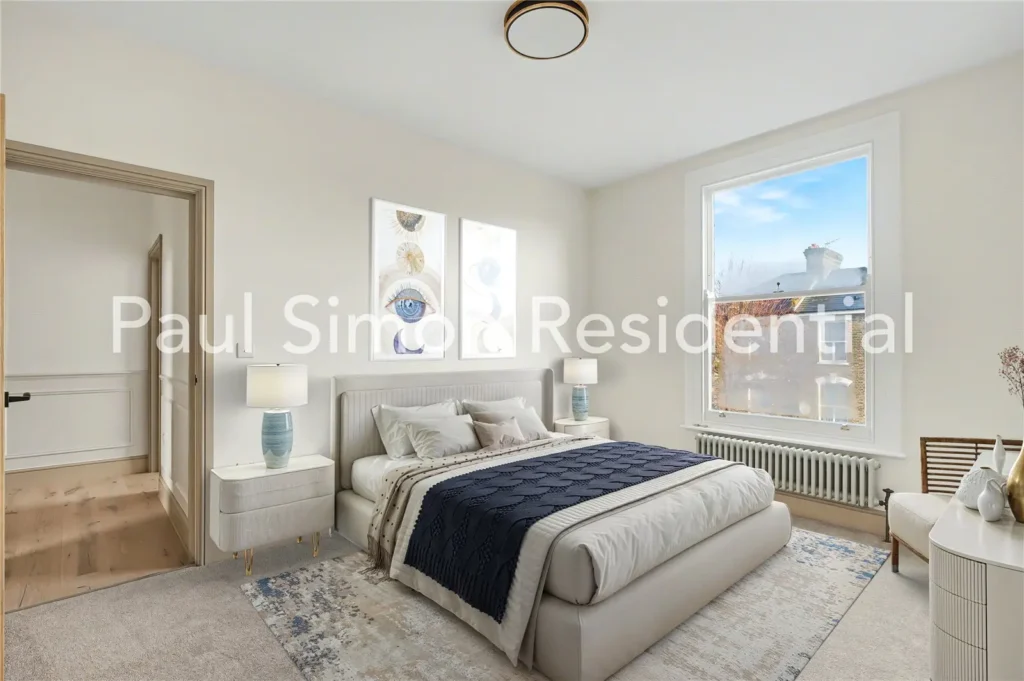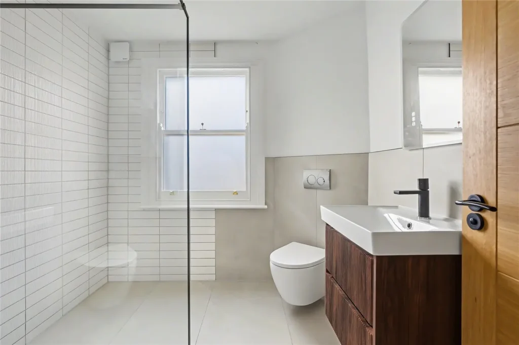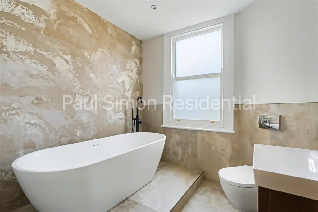 The second floor continues the sense of space, offering two further bright and well-proportioned double bedrooms, ideal for a growing family or home working arrangements. A second contemporary bathroom completes this level, featuring a bathtub, shower, and modern, tasteful finishes.